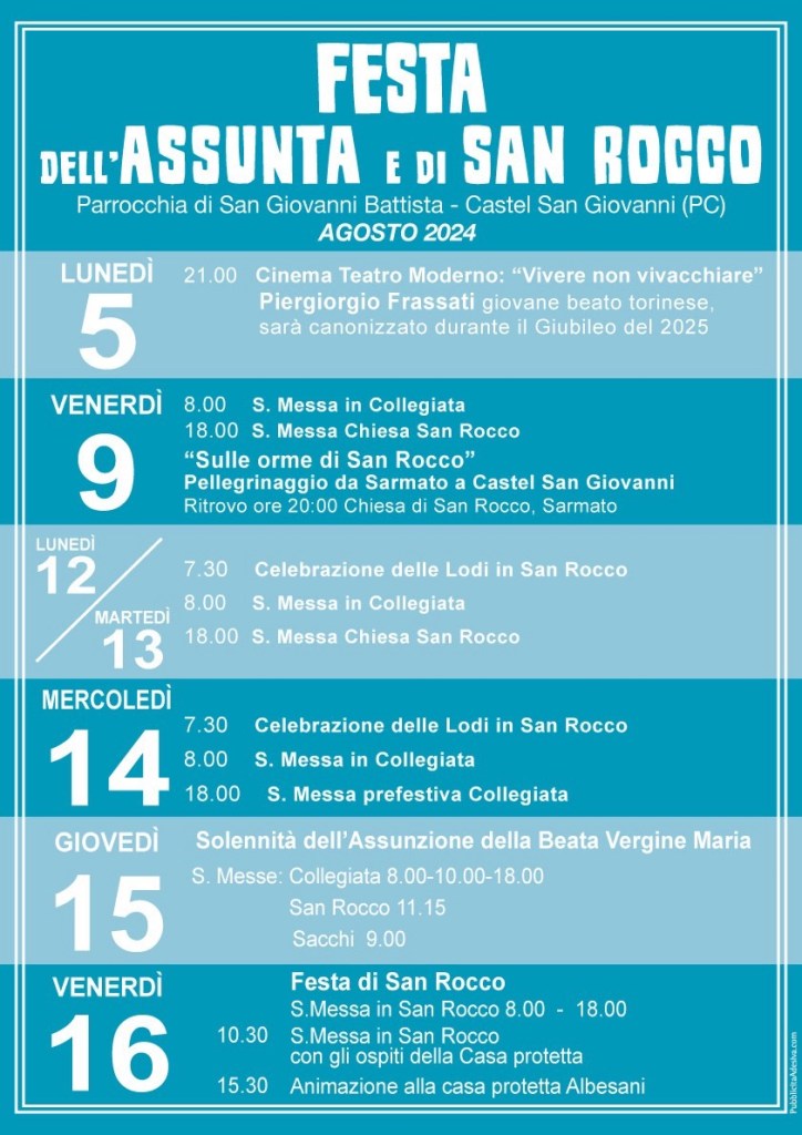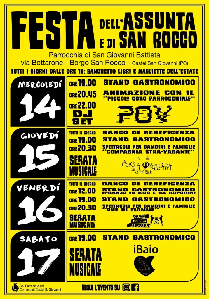 Castel San Giovanni, Festa dell’Assunta e di San Rocco organizzata dalla Parrocchia San Giovanni Battista di Castel San Giovanni.