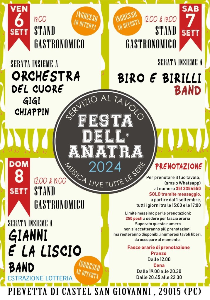 6 – 7 – 8 Settembre 2024 dalle 19.00