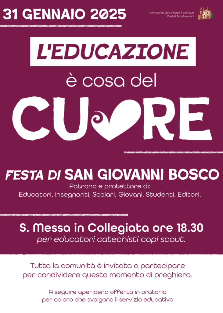 S. Messa ore 18.30 in Collegiata, per educatori, catechisti e capi scout.