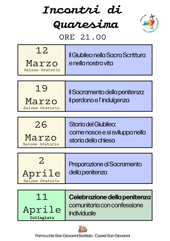 Questo ciclo di incontri si concluderà Venerdì 11 Aprile con la celebrazione della penitenza in Collegiata