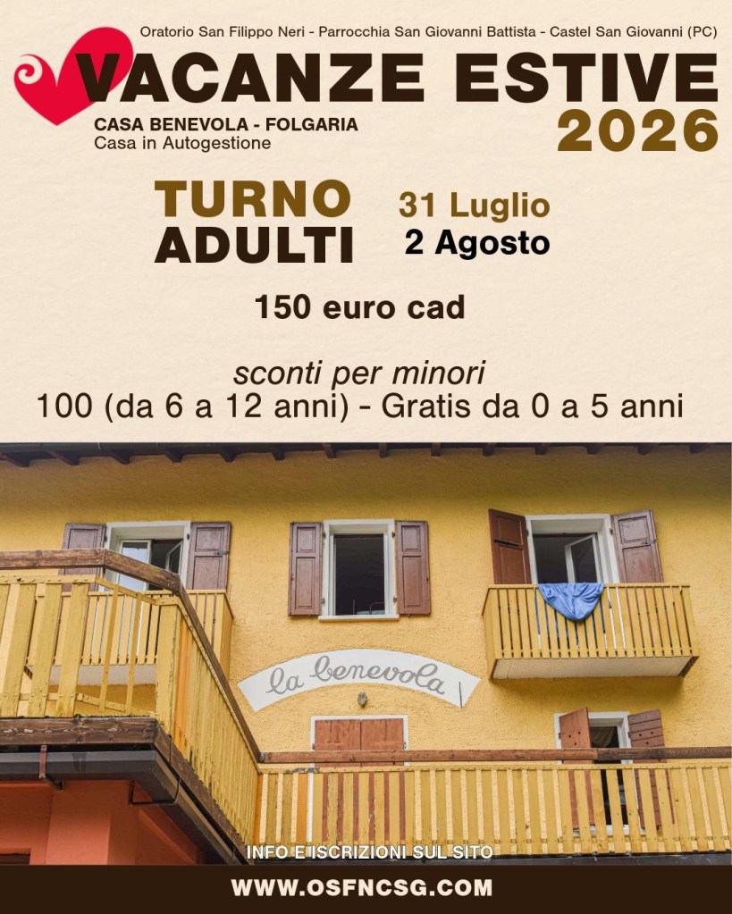 Le Vacanze Estive si terranno presso presso CASA BENEVOLA Folgaria TN nelle seguenti date: