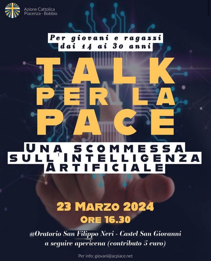 Un’interessante iniziativa organizzata all’azione cattolica diocesana, il Talk per la pace, che si terrà proprio qui a Castel San Giovanni, questo sabato.