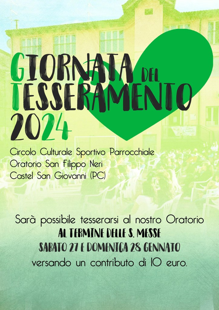 È questo lo spirito che accompagna da sempre la vita del nostro Oratorio, che stimola le iniziative e sostiene i progetti. Quest’anno in particolare, nel centenario della nascita di don Lorenzo Milani, abbiamo riflettuto in tante occasioni sul senso che quelle parole portano con sé. Perciò vogliamo chiedere a tutti di “prendersi a cuore” l’Oratorio attraverso il tesseramento: segno di un’appartenenza, di un interesse che esclude la delega ma coinvolge e rende tutti responsabili. Un piccolo sforzo anche economico, è vero: sappiamo che custodire gli spazi, investire nelle attività porta necessariamente con sé una gestione economica, spesso faticosa. Questa giornata è anche l’occasione per dire il nostro grazie a coloro che dedicano tempo ed energia all’Oratorio, ai consiglieri che per primi fanno del loro impegno un servizio appassionato.