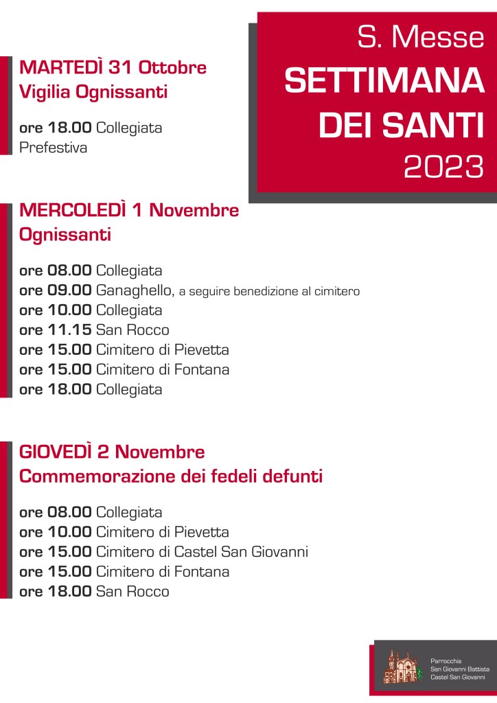PER INFORMAZIONI: Segreteria parrocchiale 0523842646 dalle 9.00 alle 12.00 dal Lun al Sab