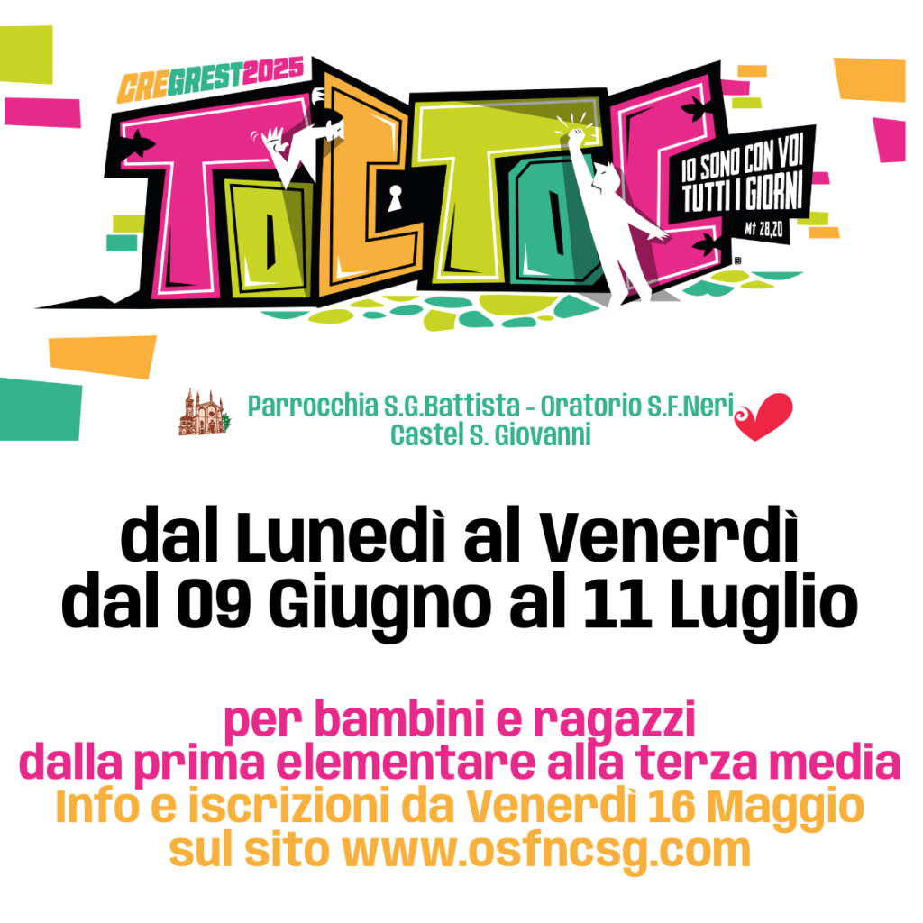 Quest’estate vogliamo guardare al Giubileo come un evento straordinario da celebrare e che sentiamo prezioso per aiutare a rileggere l’ordinario, a riscoprire uno stile di abitare la storia più umano, fraterno e sostenibile, facendoci fare esperienza di un Dio venuto tra noi. É un anno di grazia del Signore nel quale desideriamo riscoprire la relazione con Lui, facendo memoria delle grandi cose compiute nella nostra vita, ma soprattutto del suo essere accanto a noi oggi e sempre. L’immagine principale che desideriamo consegnare è quella di una porta a cui bussare con un sonoro TOCTOC perché l’esperienza di bene si apra di fronte a noi. E all’apertura di questa porta ci possa raggiungere un annuncio: Io sono con voi tutti i giorni, io ci sono, incontrando la straordinarietà di un Dio che non ci abbandona. E questo sì che può davvero cambiare l’ordinario, perché sappiamo di non essere mai soli. Il Giubileo mostra il volto di Dio misericordioso e fedele, che ci ama a tal punto da rimanere e camminare con noi. È Lui il primo pellegrino di speranza.