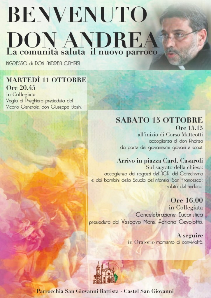 Siamo qui, come comunità riunita, gioiosi nell’accogliere il tuo arrivo e desiderosi di ringraziare il Signore per questo dono. Speriamo che tu possa sentire una grande ondata d’affetto intorno a te e che possa cominciare il tuo cammino insieme a noi nella serenità fiduciosa di chi sa che non saremo mai soli, ma guidati e sostenuti da Colui che non ci abbandona.
