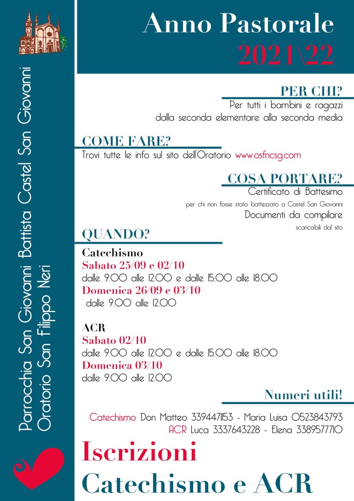 Leggi tutto con calma e iscriviti aderendo all’ACR o al Catechismo per continuare il tuo cammino di Iniziazione Cristiana.