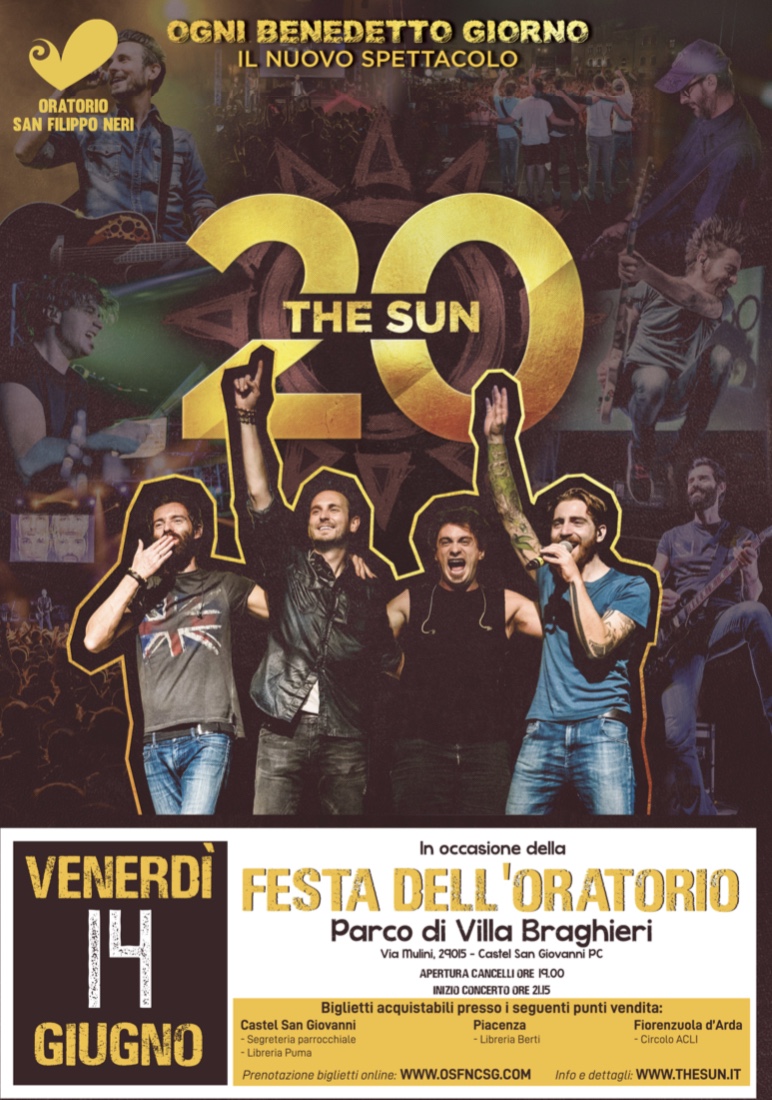 Grande successo per la festa dell’Oratorio 2019, con la musica travolgente dei The Sun e la loro testimonianza di vita e di fede , abbiamo ufficialmente aperto l’estate e festeggiato i 20 anni del nostro amato oratorio.