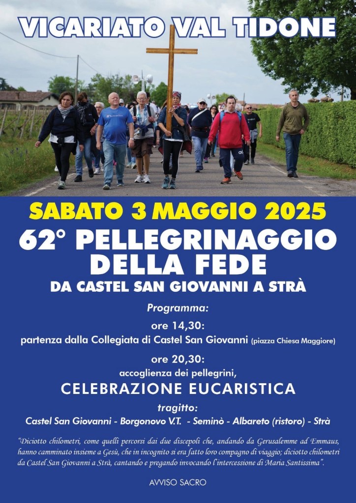 Tradizionale pellegrinaggio mariano con partenza dalla Collegiata di Castel San Giovanni e arrivo al Santuario di Strà.