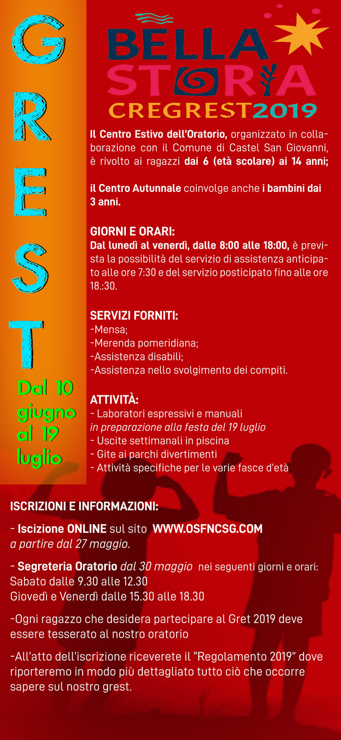 Da lunedì 27 maggio sono aperte le iscrizioni online per il Grest 2019.