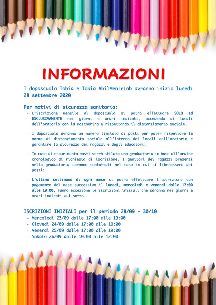 Tobia: il doposcuola del nostro oratorio che ha di recente aderito al progetto diocesano e provinciale #eorastudio. In un articolo di Avvenire del 15 febbraio 2021 cenni di storia, attimi di presente e speranze di futuro!